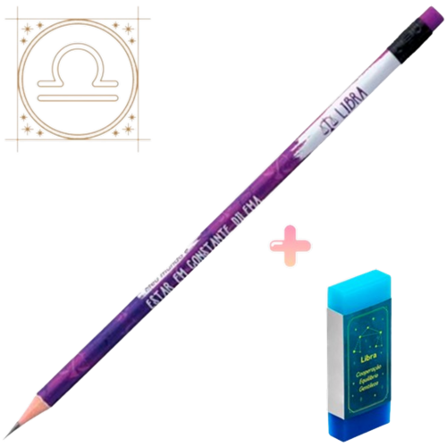 Kit de lápis preto grafite HB e Borracha Tris Signo Libra