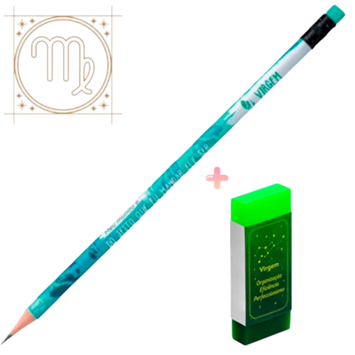 Kit de lápis preto grafite HB e Borracha Tris Signo Virgem