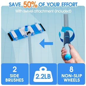 - Cabeça de escova de piscina resistente: cerdas onduladas na escova extra-larga lidam com algas e sujeira 2 vezes mais rápido. Esfregue paredes, pisos e cantos sem suar