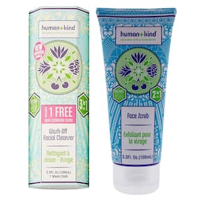 - Human+Kind; kit lavável de limpeza facial e esfoliante facial; limpador de 3,38 onças, esfoliante de 3,3 onças