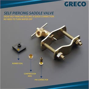 - Instale em minutos sem cortar o tubo ou desligar a água: a válvula de sela autoperfurante penetra rapidamente no seu tubo para desviar o fluxo de água para a saída de compressão de ¼".