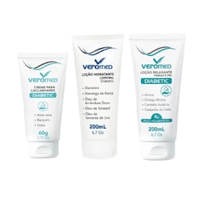 Kit de Loções Hidratantes para Cuidados com a Pele Diabética - Corpo, Calcanhares e PésCuidar da pele é essencial, especialmente para pessoas diabéticas, que precisam de hidratação profunda e proteção diária. Apresentamos o Kit de Loções Hidratantes para Diabéticos, desenvolvido para atender às necessidades específicas da pele sensível e ressecada.Loção Hidratante Corporal - Loção leve e de rápida absorção, proporciona hidratação intensa, restaurando a barreira natural da pele e prevenindo o ressecamento. Sua formulação conta ativos de Alantoína, de Karité, Óleo de Amêndoas Doce, Óleo de Girassol e Óleo de Semente de Uva. Loção para Calcanhares - Especialmente desenvolvida para tratar regiões extremamente ressecadas e ásperas, como os calcanhares. Sua composição possui Aloe Vera , Benjoim e Uréia. Creme com maior densidade, promove maciez e conforto, prevenindo rachaduras de áreas muito ressecadas.Loção Relaxante para Pés e Pernas - Hidratação e frescor para aliviar a sensação de cansaço e peso nas pernas e pés. Com ingredientes como Arnica, Ginkgo Biloba, Cetella Asiática e Castanha da Índia, a loção relaxante proporciona um efeito e de bem-estar. Benefícios do Kit: Hidratação profunda e prolongada Fórmulas testadas dermatologicamente Textura leve, de rápida absorção Ingredientes que ajudam na regeneração da pele Cuide da sua pele com carinho e proteção Marca: Não Informado Ean: 7892534608486