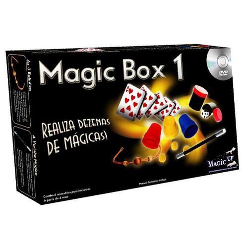 Conteúdo do Kit Magic Box 1:DVD/CD Explicando todas as mágicas contidas no Kit.CUVILHETES AMERICANOS: Três bolinhas de espuma atravessam os cuvilhetes em um passe de mágica. Esta é uma das mais clássicas mágica dos profissionais. Registros deste truque foram encontrados em antigas escrituras egípcias. O mais surpreendente é que os cuvilhetes podem ser examinados e o público pode ver que não há furos neles.AS 3 CORDAS: Três cordas de tamanho diferentes uma pequena, uma média e uma grande transformam-se em três cordas do mesmo tamanho. Depois de um estalar de dedos, elas retornam ao tamanho inicial. Esse número é um grande clássico dos mágicos profissionaisDADO MISTERIOSO: Um número do dado é livremente e secretamente escolhido por um espectador. O dado é colocado dentro de um cilindro para que o mágico não o veja, e com a força de sua telepatia, o mágico revela o número escolhido a todos.VARINHA MÁGICA: Uma varinha diminui e cresce magicamente.AS 3 BOLINHAS: Duas cordas inseridas no meio de três bolinhas de madeira são colocadas na mão do espectador e, milagrosamente, as cordas atravessam as bolinhas e a mão do espectador.BARALHO SVENGALI: Uma carta escolhida livremente pelo espectador some milagrosamente do baralho para reaparecer no bolso do mágico e se multiplicar ao infinito. Com o segredo fantástico desse baralho, é possível realizar dezenas de mágicas.