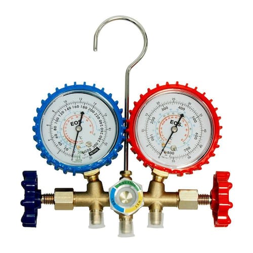 O Manifold Analógico Profissional EOS, também conhecido como Manômetro, é capaz de medir a pressão dos principais fluidos refrigerantes, como o R22/R134A/404A.