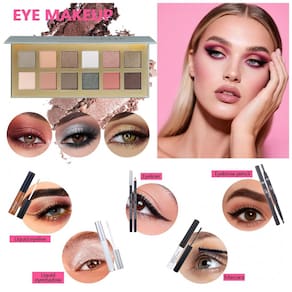 O conjunto oferece base líquida, primer facial, duas paletas de corretivo com 21 tons variados e pó bronzeador para uniformização da superfície cutânea. Ferramentas para olhos incluem máscara para cílios, delineador líquido, delineador em lápis, sombra líquida e lápis para sobrancelhas, garantindo aplicação controlada e definida.