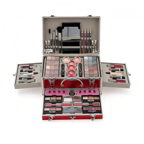 Componentes Paleta sombras, corretivo, blush pó, máscara, delineador, pó facial, gloss, batom, pincéis