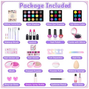 Brinquedos de maquiagem de segurança de material: O kit de maquiagem infantil é feito de material de alta qualidade, durável e renovável que atende aos padrões de brinquedos infantis internacionais (certificados CPSIA, CPC, ASTM) para segurança e foi testado no corpo, pode haver uma fragrância leve e inofensiva quando o kit de maquiagem infantil para menina acaba de ser aberto, mas pode ser utilizado com confiança. Fácil de lavar com água e sabão, não deixa manchas na pele, roupas ou móveis. Amigável para as crianças se maquiarem.