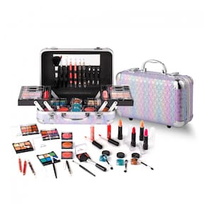 O kit de maquiagem tudo em um da Hot Sugar em design Coração Roxo oferece 59 itens essenciais organizados em uma maleta reutilizável com espelho integrado e alça superior para transporte. Inclui 27 sombras para olhos, 4 blushers, 2 gloss labial, 4 batons, 10 pincéis, 2 lápis labial e 2 lápis para olhos. A estrutura compacta facilita o armazenamento de cosméticos, ferramentas de maquiagem e acessórios, com paletas mini removíveis para uso individual.