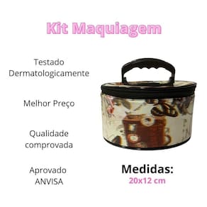 Por Gentileza leia a descrição completa, antes de efetuar a compra. Contém: 01 Maleta o modelo vai de acordo com a foto, estampa: . Tamanho: 20x12 01 Sombra para Sobrancelha 01 Base Líquida 01 Paleta de sombra Modelo De Acordo com nosso 01 Pó Compacto 01 Batom Líquido ou Gloss 01 Batom Bala 01 Esponja Make 01 Rímel 01 Kit com 05 Pinceis 01 Lápis de Olho Preto 01 Lápis de Olho Marrom 02 Sachê Limpeza de Pele INFORMAÇÕES IMPORTANTES Nossos Produtos São: com Com Validade média dos produtos de 2 a 3 anos Imagens ilustrativa cores podem ser alterados conforme lote de fabricação CÓD CB109 kit atualizado preço e itens no dia 11/08/2022 Marca: Não Informado