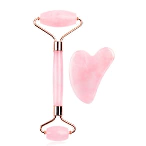Kit de massagem facial para manter seu rosto iluminado e jovem com nossas ferramentas naturais de quartzo. Inúmeros são os benefícios da massagem facial para estimular o suprimento de sangue dos músculos faciais e, portanto, sua nutrição e aparência jovem. Renovação celular e relaxamento dos músculos, o que fará com que você pareça uma expressão descansada e reluzente e minimizará as linhas de expressão. Também serve para remover bolsas oculares e realizar a drenagem linfática. Perfeito para presente. Use com um óleo facial ou com o colágeno Dolce BellaComo usar: Use todos os dias ao se levantar ou ir para a cama (ou ambos) Primeiro você coloca um óleo ou soro que faz com que as pedras percorram facilmente seu rosto sem esticar excessivamente a pele ou danificá-la. Rolo; A maior parte pode ser passada nas bochechas e na testa sempre indo para cima e a pequena parte nas olheiras e nas sobrancelhas. Você sentirá um relaxamento, pois seu sangue começará a circular e, portanto, a oxigenar, produzindo um descanso no rosto e fazendo com que pareça mais iluminado com o passar dos dias. Conseguindo assim, uma tez rejuvenescida, perfeita e radiante e uma sensação incomparável de paz interior e relaxamento. Guasha: É utilizado para esvaziar o rosto, eliminar bolsas nos olhos, aumentar a circulação. É normal que fique um pouco vermelho ao usá-lo, pois o sangue passa pelos músculos faciais e os irriga. Isso é bom para sua pele, pois é cheia de vida. Primeiro, aplique o Easy OilDrenage: é um tipo de massagem, suave e leve, aplicada no sistema circulatório e cujo objetivo é mobilizar os líquidos do corpo para favorecer a eliminação de resíduos que se acumulam no líquido que ocupa o espaço entre as células... primeiro massageie as clavículas e, sob a clavícula, luedo rena, arrastando-se da testa, olheiras, queixo duplo, mandíbula até atrás da orelha, pescoço e secreção na clavícula, onde você já massageou.