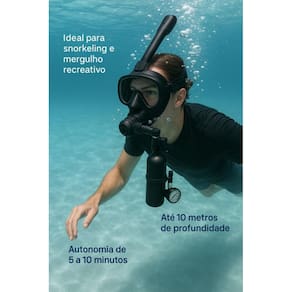 Mergulhe com Liberdade: Kit Completo de Mergulho com Máscara + Cilindro + Bomba de Ar Descubra uma nova maneira de explorar o mundo subaquático com este kit completo de mergulho, ideal para quem busca aventura com segurança e praticidade. Esse combo foi desenvolvido para unir o melhor do snorkeling e do mergulho recreativo, oferecendo liberdade de movimento e respiração confortável até mesmo a 10 metros de profundidade. O Que Está Incluso: Máscara facial de mergulho com snorkel seco integrado Cilindro de oxigênio portátil de 0,5L alumínio de aviação 6061 Bomba de ar manual de alta pressão Acessórios extras: chave de manutenção + peças reserva Principais Benefícios: Respire de forma natural e segura sob a água Visão panorâmica de 180 com lente antiembaçante Pressão de até 3000 PSI / 200 BAR com manômetro embutido Sistema de conexão rápida 360º entre cilindro e máscara Recarregável em minutos com bomba manual incluída Ideal Para: Snorkeling com cilindro de apoio Mergulho leve em até 10 metros Prática de esportes aquáticos Explorações costeiras e em piscinas profundas Situações de treino e segurança Importante: O cilindro oferece autonomia de 5 a 10 minutos, variando de acordo com a profundidade e o ritmo respiratório. É indicado para uso recreativo e esportivo, não substituindo cilindros de mergulho com tanque dorsal. Viva experiências únicas com confiança e tecnologia ao seu lado Adquira agora o seu kit completo e transforme cada mergulho em uma nova história Marca: Não Informado
