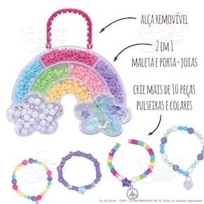 Itens da Embalagem: - 1 Kit de Miçangas Infantil Porta-joias Arco-íris Faça Você Mesmo Bijuterias Pulseiras Colares Acessórios Makebrinq.
