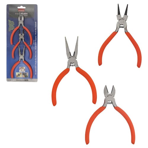 Kit com 3 Mini alicates indicados para trabalhar bijuterias e joias e semi-joias. Com corte e pegado precisa este alicate é tudo o que você precisa na sua caixa de ferramentas artesanais. Corte diagonal 3 76mm Bico reto 3-76mm Bico redondo curto 3-76mm Ean: 7898554501905