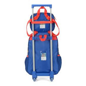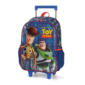 Mais detalhes sobre o produto: Kit de Mochila Escolar com Lancheira Rodas Menino Toy Story DESCRIÇÃO DO PRODUTO: Em um mundo onde os brinquedos são seres vivos que fingem não ter vida quando os humanos estão por perto, um boneco caubói de pano chamado Xerife Woody é o brinquedo favorito de Andy Davis, um garoto de seis anos. Woody é considerado o líder dos brinquedos do quarto de Andy, entre os quais estão Slinky, um cão com molas; Porquinho, o porco-cofrinho; Sr. Cabeça de Batata, o clássico brinquedo montável da Hasbro; Rex, o tiranossauro de plástico; Betty, a pastora de ovelhas e "namorada" de Wood e "patrulheiro espacial" Buzz Lightyear,. Mochila confeccionada em poliéster com painel frontal em PVC. Acompanha puxadores personalizados e bolsos laterais com telado duplo.