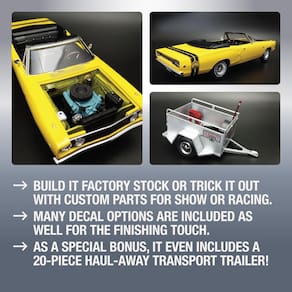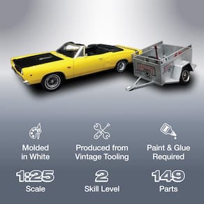 Kit de modelo MPC 1968 Dodge Coronet conversível com trailer em escala 1:25