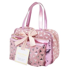 O kit de necessaire de 3 peças da coleção GLITZ, é ideal para mulheres modernas e que amam brilhar em qualquer ocasião. O kit de necessaire contém: 1 necessaire grande de tecido estampado com alça, 1 necessaire média de couro sintético com efeito metalizado e 1 necessaire pequena transparente. Com fecho em zíper, envolvidas com um lindo laço de cetim e cartão com mensagem. Perfeita para presentear e para organizar maquiagem, cosméticos e itens menores!