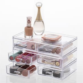 Com o Kit de Organizadores para Maquiagem, você terá uma solução completa para manter sua coleção de maquiagem impecável, evitando a bagunça e otimizando seu tempo na hora de se produzir. Desfrute de uma experiência de maquiagem mais organizada e eficiente com este kit prático e elegante.