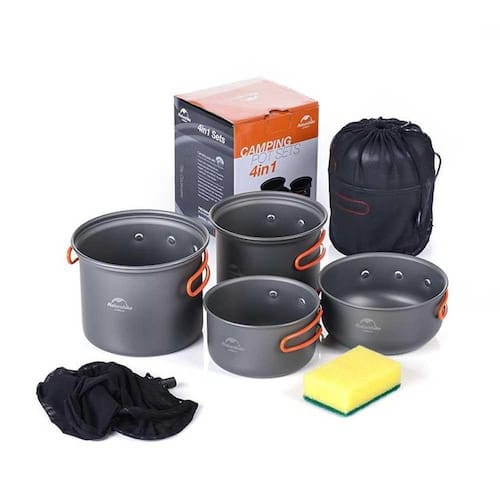Sabe aquele jogo de panelas de camping que sonhamos ter em nosso kit Esse é o kit de panelas Mountain Cook 4 peças da Naturehike
