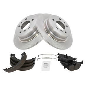 Kit de pastilhas e rotores de freio traseiro TRQ Pastilhas de freio Rotor de freio Conjunto de calçados de freio de estacionamento semimetálico compatível com 1989-1995 BMW 525i 1993 525it 1994-1995 530i 1989-1993 535i
