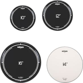 Polegadas: 10", 12", 16" (tons) + 14" (caixa)