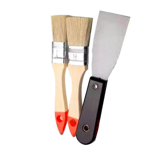 Descrição: Kit de Pincéis com Espátula, ideal para diversas aplicações de pintura. O conjunto inclui pincéis com cabos de madeira, projetados para garantir conforto durante o uso. As cerdas grossas, disponíveis em espessuras de 4cm e 3cm, oferecem excelente cobertura e durabilidade. Acompanha uma espátula de 5cm, fabricada em metal de qualidade, perfeita para acabamentos precisos. Esse kit é uma escolha prática e eficiente para quem busca resultados profissionais em projetos de pintura. Informações Técnicas:
