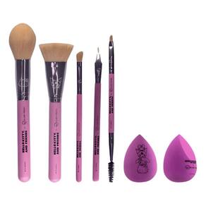 Composição do Kit: 5 pincéis de maquiagem + 1 esponja + 1 toalha demaquilante + 1 necessaire