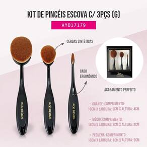 Kit de Pincéis Escova com 3 Peças Jacki Design -