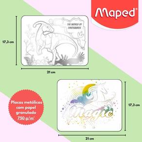 - Marca: Maped - Modelo: Aqua Art - Referência Dinoussauro: 907058 - Referência Unicórnio: 907048 - Produto não perecível. - Gramatura do papel: 750 g/m - Origem: China - Medidas do pacote: 21 25,5 cm Largura x Comprimento - Composição: Resinas termoplástica, poliestireno, Nylon e pigmentos.