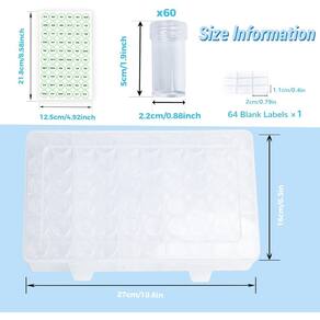 Vem com 60 contas de pintura de diamante de cristal redondo de 60 cores, 1500 peças por cor, total de 90.000 peças; uma caixa de armazenamento de 60 frascos; 1 folha de papel de etiqueta transparente redonda com 60 etiquetas impressas em número DMC, 1 folha de papel de etiqueta em branco com 64 etiquetas, kit perfeito para o seu artesanato de diamante DIY. - O pacote inclui: consiste em 1 conjunto de diamantes de 60 cores para pintura de diamante, 1 conjunto de etiquetas de pintura de diamante com número de 60 cores, uma etiqueta em branco sobressalente e um recipiente de armazenamento como suprimentos de artesanato - Cores abrangentes: com essas 60 cores básicas, você pode criar um esquema de cores semelhante que cobre todas as cores diferentes das pinturas de diamante, evitando a falta de cor, perda de diamantes e perfuração insuficiente na pintura autêntico de diamantes. - Armazenamento de combinação: a caixa de armazenamento é durável e transparente, com 60 frascos separados para seus diamantes. Permite que você classifique e rotule seus diamantes por cor, forma ou tamanho facilmente. Além disso, você também recebe um conjunto de diamantes em cores diferentes que são adequados para várias pinturas de diamantes. - Alta qualidade: nosso produto é feito de materiais de alta qualidade. A caixa de armazenamento é composta de plástico rígido e transparente que mantém seus diamantes longe de poeira e umidade. Os diamantes têm superfícies brilhantes e cortes precisos, melhorando o brilho e a profundidade de suas pinturas de diamantes. - EXCELENTE SERVIÇO: Se você tiver alguma dúvida sobre o item ou seu pedido, sinta-se à vontade para entrar em contato conosco. Faremos o nosso melhor para resolver seus problemas e responder o mais rápido possível.