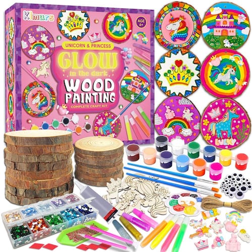 Libere klmars magia da criatividade com um kit de pintura de madeira que brilha no escuro! Projetado para amantes de unicórnios, meninas e crianças, este kit de artesanato encantador é a atividade perfeita entre pais e filhos que combina diversão e imaginação. Com nossa tinta que brilha no escuro e pingentes de resina de unicórnio, seus pequenos podem criar seus próprios artesanatos com tema de unicórnio. Deixe suas habilidades artísticas brilharem enquanto exploram o mundo do artesanato para crianças. Este kit vem com tudo o que eles precisam para dar vida às suas criações, incluindo kit de pintura em madeira, materiais de artesanato e materiais de arte. Desde pintar unicórnios de madeira até decorar fatias de madeira com pingentes de resina de unicórnio, as possibilidades são infinitas. Seus filhos não apenas se divertirão, mas também desenvolverão habilidades essenciais, como coordenação motora, criatividade e resolução de problemas. Nosso kit de artesanato de pintura de madeira não é apenas um brinquedo, é uma porta de entrada para um mundo de imaginação e expressão artística. Seja um presente de aniversário ou uma atividade de dia chuvoso, nosso kit de artesanato certamente trará alegria e emoção. Veja seus rostos brilharem enquanto suas criações ganham vida no escuro, criando um ambiente mágico em seu quarto. Invista em sua criatividade e proporcione infinitas horas de entretenimento com nossos suprimentos de artesanato seguros e de alta qualidade. Deixe seu artista interior brilhar e crie memórias que durarão uma vida inteira com nosso kit de pintura de madeira de unicórnio. - ?Atividades criativas para crianças?: Liberte klmars magia da criatividade com um kit de pintura de madeira que brilha no escuro! Projetado para amantes de unicórnios, meninas e crianças de 6 a 12 anos, este kit de artesanato encantador é a atividade perfeita entre pais e filhos que combina diversão e imaginação. - ?Tudo o que você precisa?: Este kit de artesanato vem com tudo o que eles precisam para dar vida às suas criações, incluindo kit de pintura de madeira, materiais de artesanato e materiais de arte. Desde pintar enfeites de madeira de unicórnio até decorar fatias de madeira com pingentes de resina de unicórnio, as possibilidades são infinitas. - ?Brilha no escuro?: Nossa tinta que brilha no escuro adicionará um toque caprichoso a qualquer obra de arte. Com seu brilho vibrante e duradouro, as criações do seu pequeno ganharão vida à noite, criando um efeito hipnotizante que cativará os amantes de unicórnios de todas as idades. - ?Kit de alta qualidade?: nossas fatias de madeira são feitas de madeira natural, são cortadas, secas, polidas e lixadas para uma superfície lisa que pode ser facilmente escrita e desenhada. Todas as peças e acessórios de madeira são embalados individualmente em uma bela caixa para evitar confusão e bagunça. Troque você feliz com nosso cuidado. - Educativo e divertido: o artesanato não é apenas um passatempo divertido, mas também uma ótima maneira para as crianças desenvolverem suas habilidades motoras finas, criatividade e habilidades de resolução de problemas. Seja você um artista experiente ou iniciante, este kit é perfeito para todos os níveis de habilidade. - ?Presente ideal para crianças?: este kit não apenas oferece entretenimento sem fim, mas também é um presente maravilhoso para crianças. Incentive os talentos artísticos de seus filhos e observe-os brilharem com orgulho enquanto exibem suas obras de arte brilhantes. Este kit de artesanato é um presente ideal para aniversários, Natal, festas, projetos de arte escolares, artesanato familiar etc. Adquira o seu agora e deixe o brilho começar!