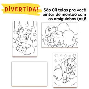 O Brinquedo Pinturinha Unicórnios é a escolha perfeita para pequenos artistas a partir de 4 anos Ele transforma a hora da brincadeira em um momento cheio de imaginação, cor e diversão. Acompanha um cavalete de plástico, tintas coloridas e 4 telas de madeira com 24 cm cada - sendo 3 com desenhos de unicórnios super fofas para pintar e 1 tela em branco para a criança criar o seu próprio unicórnio