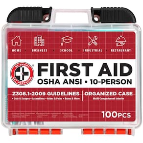 - KIT DE PRIMEIROS SOCORROS - Criado pelo fabricante líder de kits de primeiros socorros nos EUA, este kit de primeiros socorros OSHA/ANSI, 10 pessoas e 100 peças, foi projetado para fornecer tratamentos para lesões físicas ou emergências médicas no local de trabalho.