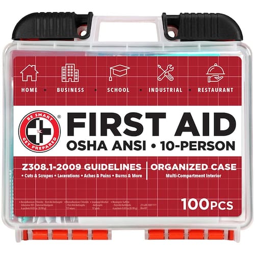 Kit de primeiros socorros Be Smart Get Prepared OSHA/ANSI - 10 pessoas, 100 peças - Projetado para uso doméstico, comercial, escolar, industrial e restaurantes - Compacto e portátil