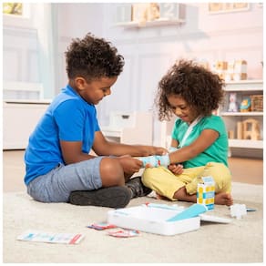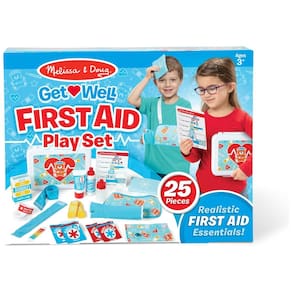 Melissa Doug é uma marca conhecida por criar produtos lindamente projetados que estimulam a imaginação e a criatividade. A empresa tem orgulho de fazer parceria com a Academia Americana de Pediatria para promover o desenvolvimento inicial do cérebro e ajudar as crianças a desenvolver habilidades importantes para a vida por meio de brincadeiras. O kit médico de primeiros socorros de 25 peças é uma maneira divertida e envolvente de incentivar jovens curandeiros por muitos anos.