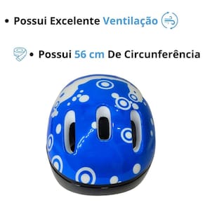 Kit de proteção infantil círculo azul 7 peças Kit de proteção infantil de 7 peças, projetado especialmente para garantir a segurança e a diversão das crianças durante suas atividades físicas e esportivas. Este kit inclui capacete, 1 par de cotoveleiras, 1 par de munhequeiras e 1 par de joelheiras. O capacete é a peça central deste conjunto e é essencial para proteger a cabeça das crianças contra impactos e quedas durante brincadeiras de bicicleta, skate, patins e atividades similares. Ele possui um design ergonômico, leve e confortável, com uma estrutura resistente e acolchoada. As cotoveleiras são especialmente projetadas para proteger os cotovelos das crianças em caso de quedas ou colisões. As munhequeiras são essenciais para proteger os pulsos e as mãos das crianças durante atividades que envolvam equilíbrio, como skate ou patins. As joelheiras são componentes cruciais deste kit de proteção. Projetadas para envolver confortavelmente os joelhos, elas fornecem uma camada de proteção acolchoada e resistente para minimizar os riscos de lesões em caso de quedas ou colisões. As joelheiras são ajustáveis e possuem fechos de tecido adesivo para garantir um encaixe seguro e personalizado. O kit de proteção infantil de 7 peças é uma escolha excelente para pais preocupados com a segurança de seus filhos durante atividades físicas. Com esse kit, as crianças podem desfrutar de suas aventuras ao ar livre com confiança, sabendo que estão devidamente protegidas. Corra e garanta já o seu