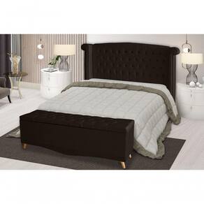 Kit De Quarto Cabeceira De Cama Box E Calçadeira Baú Toquio Casal 140 Cm Suede Marrom Eli Móveis E Decoração