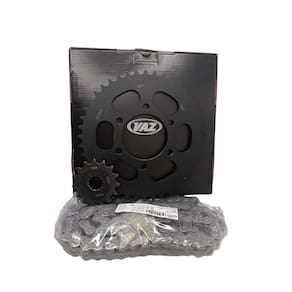 Embalagem: 01 Kit Transmissão Completo. ( Coroa, Pinhão e Corrente )