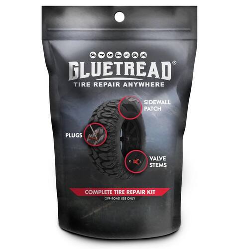 - COMPONENTES DE QUALIDADE FABRICADOS NOS EUA - Nosso kit é feito para durar, com todos os componentes fabricados nos EUA. A Gluetread é uma empresa dos EUA especializada no design e fornecimento de soluções patenteadas de kits de reparo de pneus laterais para veículos off-road e está em operação desde 2018. Você pode confiar na m