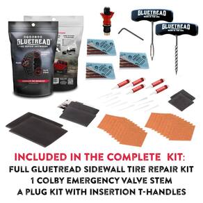 - KIT DE REPARO DE PNEUS TUDO-EM-UM - Tudo o que você precisa para um reparo eficiente de pneus. Inclui um kit completo de reparo de pneus de parede lateral GluetRead, 1 haste de válvula de emergência Colby de alta qualidade para substituição confiável da haste da válvula, um kit de plugues equipado com alças em T de inserção de alumínio pesadas fabricadas em Montana para facilitar a aplicação do plugue e instruções detalhadas.
