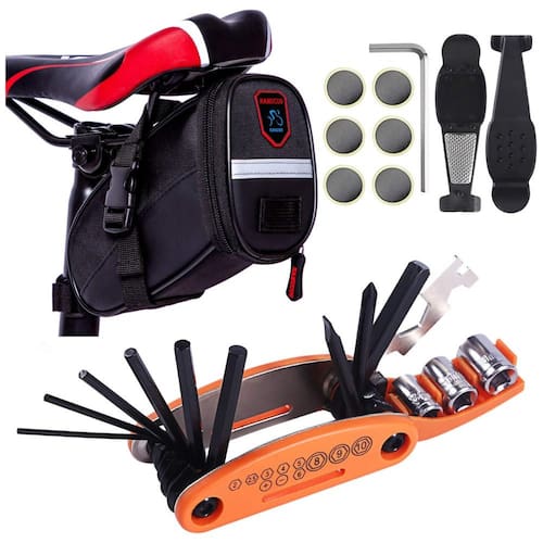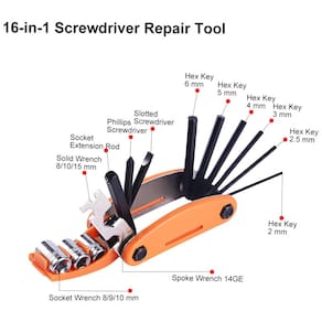 FERRAMENTA 16 EM 1 DE ALTA RESISTÊNCIA As ferramentas 16 em 1 essenciais para bicicletas têm 6 tipos de chave hexagonal interna diferente, 3 tipos de chave de soquete, 3 tipos de chave plana, 2 tipos de chave de fenda, 1 chave de raio e 1 manga haste de extensão BOLSA DE SELIM PORTÁTIL DEDICADA. A bolsa de cauda do assento em forma de cunha aerodinâmica com bolso principal interno e bolso de malha auxiliar, pode encher as ferramentas e pequenos itens como chaves. Sistema de montagem de liberação rápida da bolsa do assento que permite montagem e remoção rápida e fácil sem ferramentas. É compacto e fácil de transportar, e tem uma função à prova dágua. VERSÃO DE PNEUS MELHORADA 3 EM 1. Alavancas de pneus remendos pegajosos Frustração função três em um, nossos pés de cabra tipo peixe são maiores, mais resistentes e não são fáceis de quebrar, a frustração pode ser desmontada e instalada no pé de cabra mais conveniente. Pode acomodar vários remendos de pneus, pode ser desmontado e zenado quando não estiver em uso Marca: Não Informado