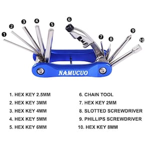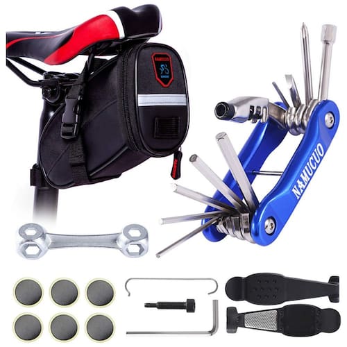 FERRAMENTA 10 EM 1 DE ALTA RESISTÊNCIA. Os kits de ferramentas de reparo de bicicletas são feitos de aço carbono de alta qualidade com versão de aço mais duro. Acabamento fino e profissional, design de moda, durável, mais forte e mais eficaz, inclui chave hexagonal universal chaves allen 2, 2,5, 3, 4, 5, 6, 8mm, chave de fenda de cabeça chata, chave de fenda Philips e separador de corrente de bicicleta gancho de corrente adicional , dedal sobressalente e chave de BOLSA DE SELIM PORTÁTIL DEDICADA. A bolsa de cauda do assento em forma de cunha aerodinâmica com bolso principal interno e bolso de malha auxiliar, pode encher as ferramentas e pequenos itens como chaves. Sistema de montagem de liberação rápida da bolsa do assento que permite montagem e remoção rápida e fácil sem ferramentas. É compacto e fácil de transportar, e tem uma função à prova dágua VERSÃO DE PNEUS MELHORADA 3 EM 1. Alavancas de pneus remendos pegajosos Frustração função três em um, nossos pés de cabra tipo peixe são maiores, mais resistentes e não são fáceis de quebrar, a frustração pode ser desmontada e instalada no pé de cabra mais conveniente. Pode acomodar vários remendos de pneus, pode ser desmontado e zenado quando não estiver em uso Marca: Não Informado