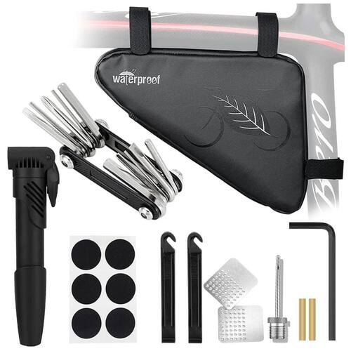 Conjunto de reparo de bicicleta essencial O kit de reparo portátil de bicicleta WOTOW inclui uma bolsa de ção de tubo superior à prova dágua, uma mini bomba de bicicleta de 120psi, uma ferramenta de chave de reparo de bicicleta multifuncional 11 em 1, algumas barras de pneu de bicicleta e remendos. Todos os acessórios podem ser guardados na bolsa de bicicleta montada debaixo do quadro, o que torna a sua condução e viagem sem problemas e com facilidade. Bolsa de ção grande à prova dágua A bolsa de triângulo de bicicleta adotou poliéster 600D com revestimento de PU, que é resistente à água e às intempéries e fácil de limpar. Mini bomba de inflação rápida Sistema de pressão de reforço embutido, a bomba de pressão máxima de 120 PSI permitindo bombear pneus furados com menos força. Com o adaptador de válvula sob a alavanca de trava, o inflador se encaixa na boca da válvula Schrader e Presta. E a agulha esportiva anexada também pode inflar bolas esportivas e anéis de natação, além das bicicletas e carrinhos normais de montanha e estrada. Ferramenta de reparo multifuncional 11 em 1 A ferramenta de reparo de bicicleta multifuncional dobrável WOTOW é feita de aço inoxidável de alta qualidade, resistente e durável, inclui chave Allen de 1,5, 2, 2,5, 3, 4, 5, , slot e Chave de fenda cruzada, T25 Torx, gancho de chave. O tamanho mini e compacto facilitam o uso e o transporte Marca: Não Informado