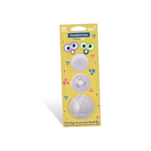 Kit De Reposição Monsterbaby Para Copo Infantil Tramontina 3 Peças Tramontina Kit de Reposição Monsterbaby para Copo Infantil Tramontina 3 Peças Tramontina - Com o Kit de Reposição Monsterbaby para Copo Infantil Tramontina 3 Peças da linha Monsterbaby o seu pequeno não fica sem o seu copinho favorito. O kit conta com bico e diafragma produzidos em silicone, válvula corta-gotas em polipropileno. Com o sistema corta-gotas, fica ainda mais fácil e seguro do seu filho tomar suas bebidas favoritas, pois funciona controlando a quantidade de líquidos que sai do bico. E o melhor de tudo é que o produto livre de BPA. Com a linha Monsterbaby tudo fica mais divertido.OrientaçõesBico e diafragma de silicone. Válvula corta-gotas de polipropileno. O sistema corta-gotas funciona controlando a quantidade de líquidos que sai do bico. Produto livre de BPA. O Bisfenol-A (BPA) é um componente químico na produção de alguns plásticos como o Policarbonato. Este componente pode ser prejudicial à saúde e por isso a Tramontina não o utiliza em seus produtos.ObservaçõesRecomenda-se usar estes produtos para crianças com 6 meses ou mais. Antes da primeira utilização, lave as peças com água morna, esponja macia e detergente neutro. Seque bem antes de guardar. O sistema de corta-gotas funciona controlando a quantidade de líquidos que sai do bico, porém, caso o copo fique virado com o bico para baixo, algumas gotas poderão sair pelos orifícios. Depois de cada utilização, separe todas as partes, lave e seque. Não recomendamos usar estes produtos em máquinas de lavar louças e micro-ondas. Com o os materiais poderão absorver a coloração dos líquidos. Para descarte dos produtos e embalagens siga as orientações de reciclagem vigentes.Características GeraisEAN137891112184084DUN1417891112184081NCM3924.10.00Peso Líquido0,0200 kg.Peso Bruto0,0300 kg.Metragem0,000782 m.Dimensões Embalagem (Compr. X Larg. X Alt.)40x 85x 230 mm.Dimensões Produto (Compr. X Larg. X Alt.)40x 85x 230 mm. Características Gerais do Produto: Garantia: - 1 Ano
