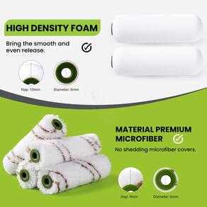 Nosso kit de rolo de pintura inclui copo de tinta, forro de copo de tinta, rolo de tinta de espuma, capa de rolo de microfibra, moldura de rolo de tinta, pincel de tinta de espuma para facilitar seu trabalho de pintura. Nossos rolos de tinta de espuma são especialmente projetados com espuma de alta densidade para garantir uma aplicação suave e uniforme da tinta. A capa do rolo de tinta de microfibra é firme, não cai facilmente. As duas placas de cobertura lidam melhor com a diferença de material de parede em trabalhos de pintura. A alça da moldura do rolo de pintura é feita de plástico, proporcionando conforto ergonômico e fácil aderência. O design exclusivo da cauda permite compatibilidade com hastes de extensão, permitindo que você alcance áreas altas ou difíceis de acessar sem esforço. As hastes de conexão de aço inoxidável garantem durabilidade e flexibilidade quando o rolo é inserido, melhorando a eficiência geral da pintura. O copo de tinta é forte e durável. A textura do interior do copo ajuda a reduzir o desperdício e evita que gotas de tinta salpiquem no chão. A aderência é ajustável e ergonomicamente projetada para uma aderência mais firme. As cerdas naturais resistentes são projetadas para manter mais tinta, criando um acabamento mais suave com menos riscos e economizando tempo no trabalho. Pincel para áreas estreitas como portas, janelas, cantos e tetos. A escova de espuma é durável, a cabeça da esponja não sairá do cabo de madeira e parte da poeira e sujeira que se prendem entre as peças pequenas, incluindo as partes de folga que são difíceis de limpar, podem ser removidas escovando suavemente. Destinado a profissionais e entusiastas apaixonados por bricolage, o kit garante versatilidade e precisão na pintura para atender a uma variedade de tarefas e conclusões - Várias colocações: Nosso rolo de pintura de 10 cm é especialmente projetado com espuma de alta densidade que garante uma aplicação de tinta suave e uniforme. A capa do rolo de tinta de microfibra é forte e não cai facilmente. Dois tipos de capas lidam melhor com diferentes materiais da parede no trabalho de pintura - Bom material: O balde de tinta é resistente e durável. O interior texturizado do copo de tinta ajuda a reduzir o desperdício e evita que gotas de tinta salpiquem no chão. A aderência é ajustável e ergonomicamente projetada é mais firmemente presa na mão - Compacto e portátil: as cerdas naturais resistentes do pincel de pintura são projetadas para manter mais tinta, criando um acabamento mais suave com menos riscos e economizando seu tempo no trabalho. Aparador de pintura rápida e pincel de corte para cortar ao redor de portas, cantos de janelas e teto, todas as áreas apertadas - Amplamente aplicável: os kits de rolo de pintura são adequados para profissionais e entusiastas apaixonados por bricolage, o conjunto de rolos de pintura garante versatilidade e precisão na pintura, atendendo a uma variedade de tarefas e acabamentos - Kit de rolo de pintura: Nossos conjuntos de rolos de pintura incluem copo e forro de tinta, moldura de rolo de pintura de espuma e microfibra, pincel de tinta, pincéis de espuma, facilitando seu trabalho de pintura