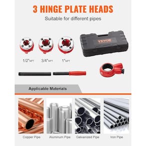 - Durabilidade de longa duração: construído com uma forte cabeça de placa de dobradiça de ferro fundido e material 9SICR atualizado nos dentes da cabeça da matriz, este kit de rosqueador de tubos resiste ao desgaste e oferece desempenho excepcional ao longo do tempo.
