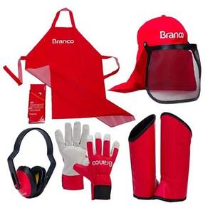 CA: 17135Confeccionado em tecido 100% algodão brim, aba de 7,5 de comprimento e protetor de nuca de 20cm de comprimento. Atende requisitos NR-06.EPI super leve e de modelagem confortável.Alta performance de trabalho e maior produtividade. Protetor facial que não amassa e não distorce a visão. Recomendado para atividades de roçada, colheitas em geral e podas de arbustos. Proteção de raios UV e de partículas volantes.Protetor auricular 14 DBCA: 26023Equipamento de proteção individual EPI tipo protetor auricular desenvolvido com espuma preta de absorção acolchoada e revestida de tecido siliconado. Constituído com duas conchas de abafadores em plástico em forma a cor vermelho, montados simetricamente nas extremidades a uma haste-suporte ajustável de plástico rígido, e na cor preta, em forma de arco, adaptável a diferentes formatos de cabeça humana, permitindo que cada abafador se aplique sob pressão aos respectivos auriculares.Proteção dos ouvidos do usuário contra risco de ruído. Indicado para ruídos até 99dB.Luva de Couro e Nylon EspecialCA: 25636Equipamento de proteção individual tipo luva para proteção das mãos nas atividades florestais ou industriais. Desenvolvida em tamanho 9. Palma fabricada em couro vaqueta 10/12 linhas na cor natural, com reforço em costura entre os dedos e externo central com dupla costura, cobrindo as pontas dos dedos em ambas as mãos até o punho. Dorso fabricado com tecido poliéster espumado na cor vermelha com tecnologia climatec com 6 cm de comprimento, com fechamento em tiras aderentes para melhor empunhadura e com elástico de 5cm de comprimento no dorso costurado horizontalmente para ajustes de vestimenta.Designer arrojado com maior segurança, aderência, maleabilidade, flexibilidade e durabilidade.Perneira de Proteção Vermelha FechadaCA: 30955Vestimento de segurança tipo perneira, confeccionada em material sintético de 4mm de espessura, forrada internamente, em peça única para sobrepor sobre vestimenta - sem ajuste/regulagem de tamanho , fechamento por costura de solda eletrônica, contendo três lâminas de PVC na parte frontal da perneira, de 16 cm de comprimento e 0,6 mm de espessura. Proteção de material sintético no metatarso.Tamanho: únicoPeso: 650gCor: VermelhaMedidas: 40 cm de comprimento frontal20 cm de comprimento posterior 09 cm de comprimento sobre o metatarso0,08 cm de espessura40 cm de diâmetroProteção contra picadas de animais peçonhentos, materiais ou objetos cortantes.Avental Roçador PVC Vermelho ForradoCA: 43913Avental confeccionado em material PVC laminado na cor vermelha com forro. Impermeável. Com ajustes por meio de amarração.Peso: 85gTamanho: 120 x 70cmProteção do usuário contra riscos de origem química.Serviços de limpeza geral .Marca: Branco