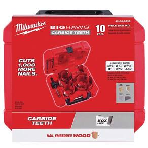 Kit de serra de furo Milwaukee 49-56-9290 10 peças BIG HAWG com dentes de metal duro Novo