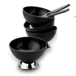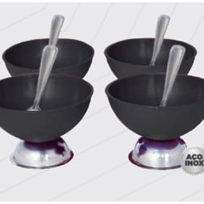 Kit de Sobremesa Taças e Colheres de Inox e Plástico 16 peças Cor: Preto Jogo de Sobremesa 16 Peças em Aço Inox Itens Inclusos: 08 colheres e 08 tigelas