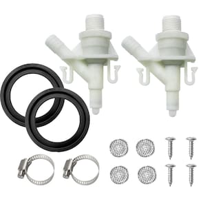 - O kit de válvula sanitária RV inclui 2 válvulas de água 385311641, 2 x 385311658 Flush Ball Seal, 2 x fixadores de mangueira, 4 x parafusos e 4 x filtros de malha inoxidável