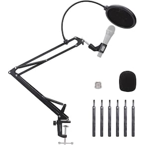 - Kit de braço de lança de transmissão tudo-em-um de 14 polegadas (sem microfone incluído). Inclui tudo o que você precisa para gravação em estúdio e som ao , incluindo um suporte para microfone, filtro pop e um pára-brisas de microfone